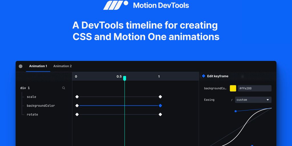 Motion DevTools is a Chrome extension that speeds up your animation design and development. Use a classic timeline interface to inspect, edit and export animations made with CSS or Motion One.