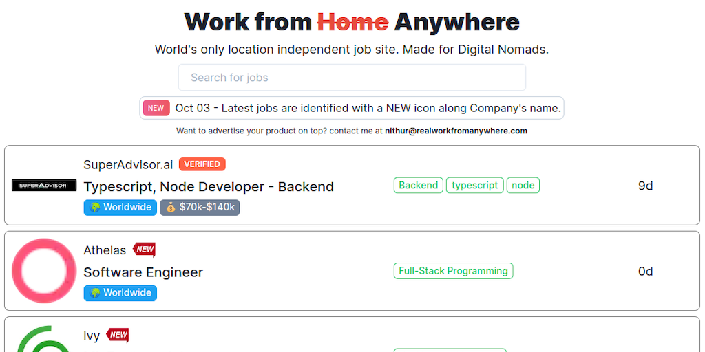 Real Work From Anywhere - A site for fully location independent jobs | Product Hunt