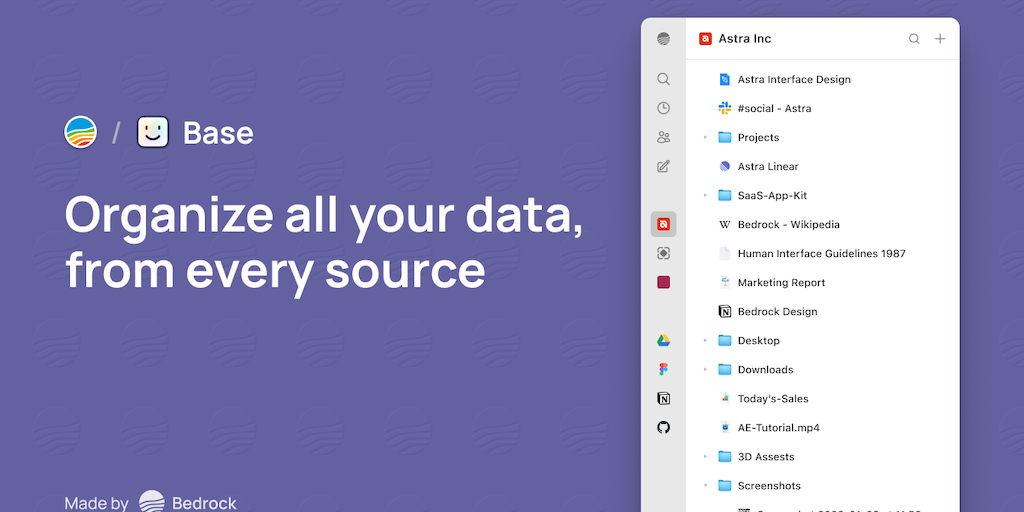 Organize all of your apps, files, links, and more in Bedrock Base. It's like Mac Finder but built for the Internet Age.