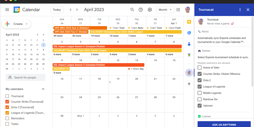 Tournacat - Sync Esports schedules to Google Calendar automatically | Product Hunt