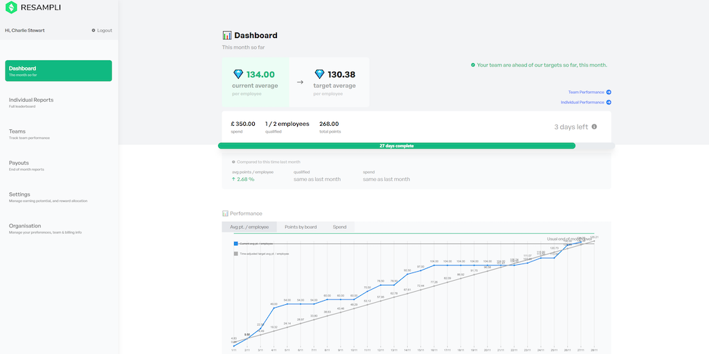 Use Resampli to drive productivity without compromising the all important relationship with your tech team. Hooks into Jira software, tracks completed issues, rewards users proportional to estimated w