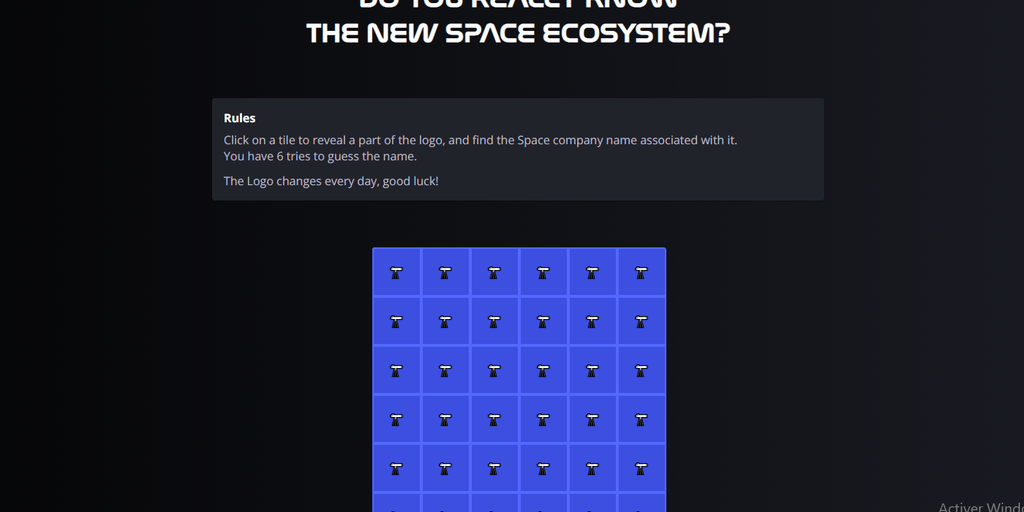 A little game to discover space companies from their logo. Click on a tile to reveal a part of the logo, and find the Space company name associated with it.