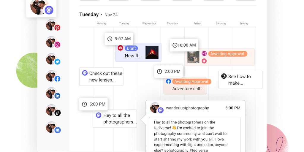 Plan and schedule posts to Mastodon with Buffer's newest integration. Manage your hashtags, save content ideas, schedule posts at the optimal time, and cross-post to Twitter and your other favorite ne