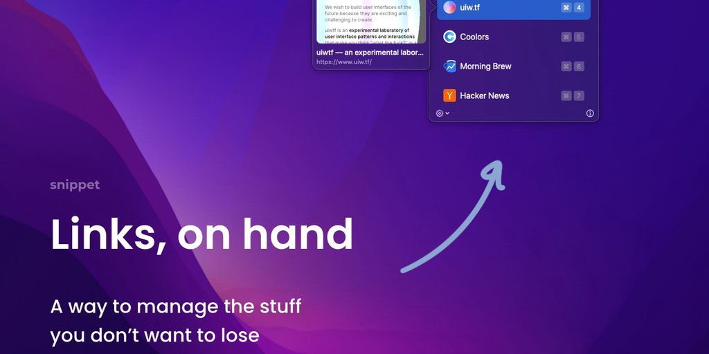 a macOS quick link finder inspired by https://uiw.tf get the https://testflight.apple.com/join/RTRJrZYM building this to remember all sorts of cool links and to hit my routines each day let me know on