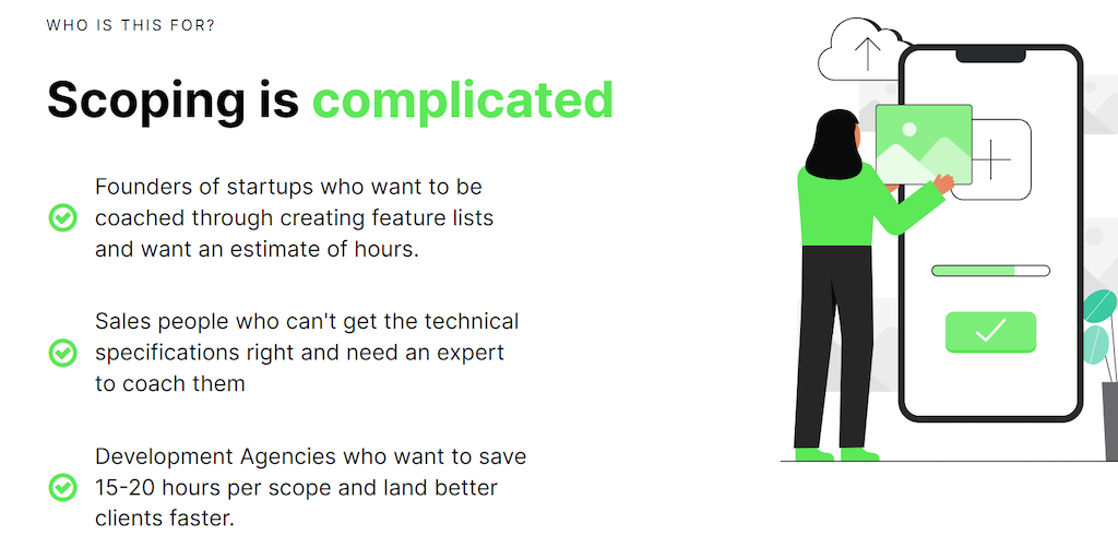 Thanks for viewing our product! We built SmartScope to help startups create amazing app scopes quickly without a developer. For several months we have been refining our process and are ready to launch