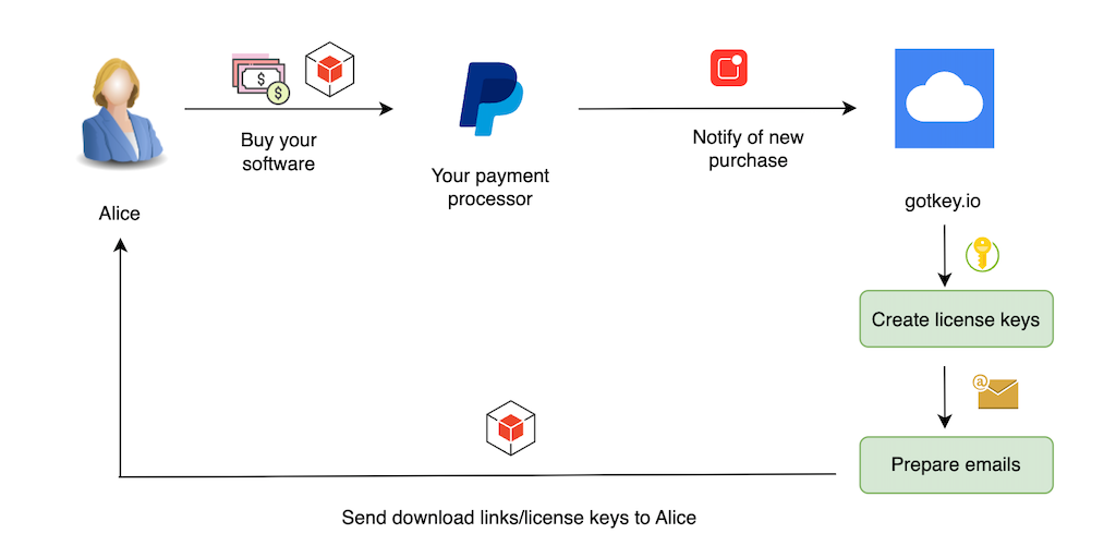 Many products are left unsold or released as freeware/giveaways because of the lack of a simple license management system. Managing a license server is hard. Gotkey.io helps you handle license creatio