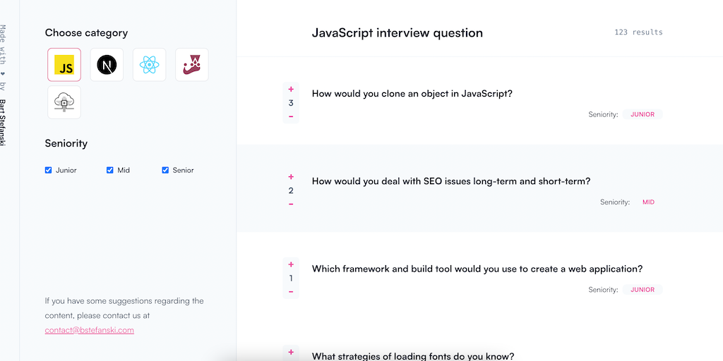 This app will help you get ready for your next JavaScript role interview. It contains over 300 questions about JavaScript, React.js, Next.js, Testing and architecture for every developer. For free :)!