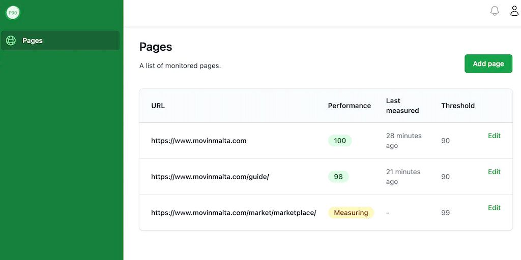 Free Discuss Collect Share Stats Performance90 monitors the PageSpeed of your websites and sends you an email notification when the speed drops below 90 - or any configurable threshold.