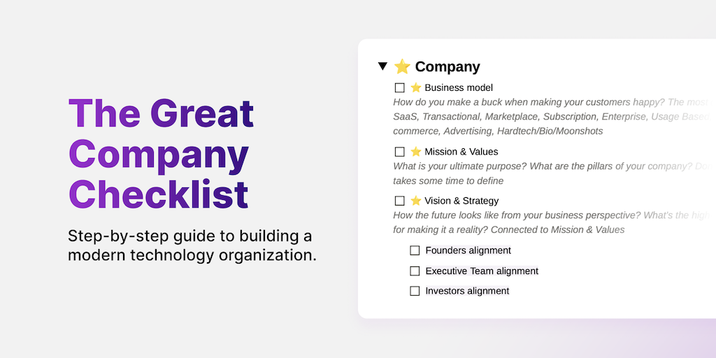 Grasp the big picture of how modern technology organizations are built, operated, and scaled with The Great Company Checklist by DevConcrete.