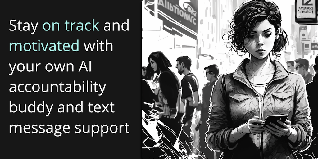 Our conversational AI accountability buddy and personal assistant uses SMS text messaging and GPT to keep you motivated and on track towards achieving your goals. With the help of our AI assistant, yo