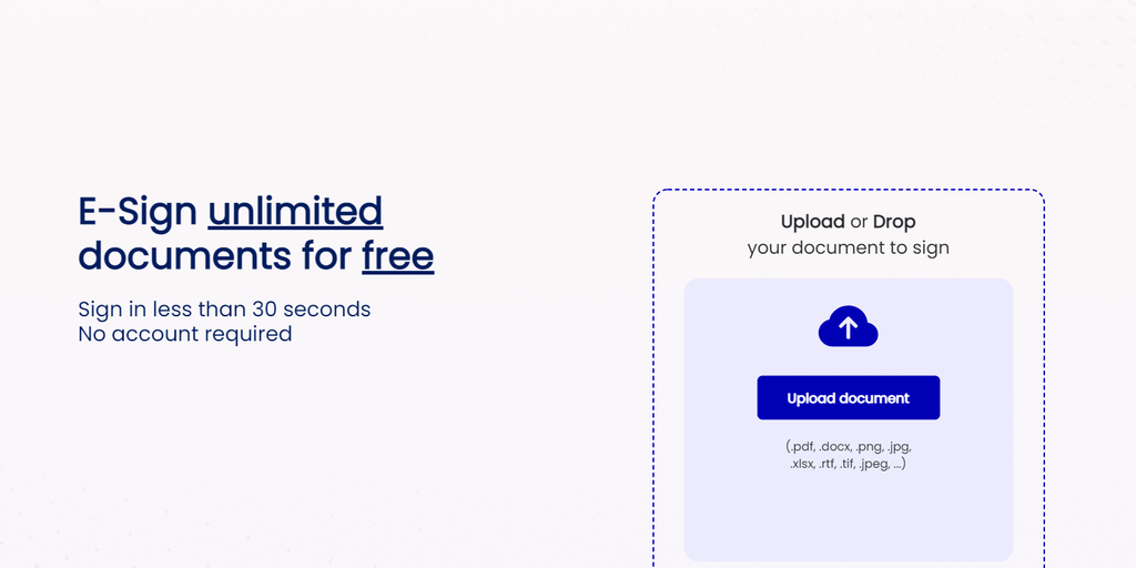 E-Sign unlimited documents for free Sign in less than 30 seconds. No account required