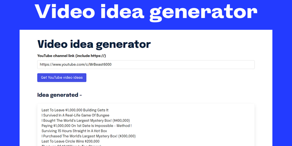 Go viral on YouTube with the power of AI! Generate Viral Video Ideas, Preview Thumbnails and Titles before upload, and make better video titles powered by GPT-3 🤖 Made for creators, by a 15-year-old c