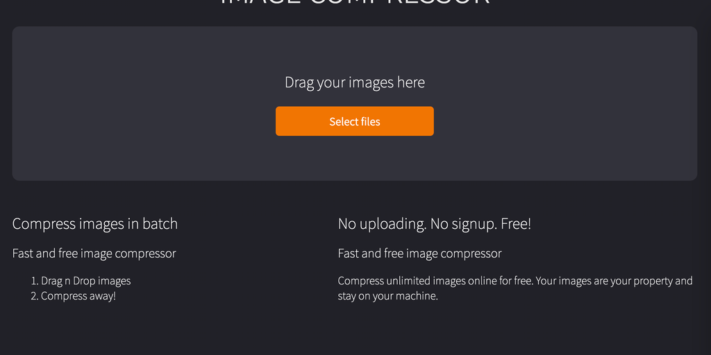 Image compressor lets you compress unlimited images quickly, for free. - No Ads - No Signup - No Uploading - Just drop your images