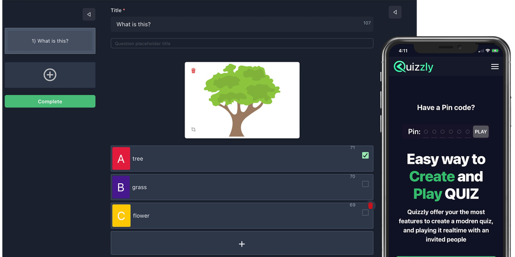 Quizzly is a platform, for learning purposes, It gives full ability to create a small to large quizzes and to play them with your friends.