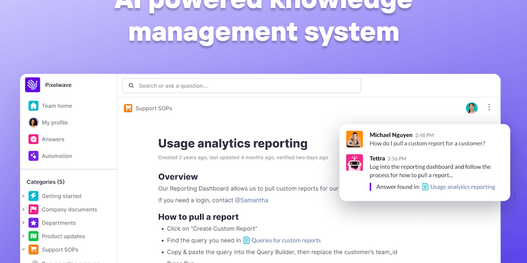 Kai by Tettra - AI powered Knowledge Base and Q&A for Teams | Product Hunt