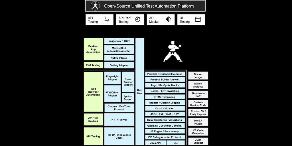 Karate is the only open-source tool to combine API test-automation, API mocks, API performance-testing and UI automation into a single, unified framework.