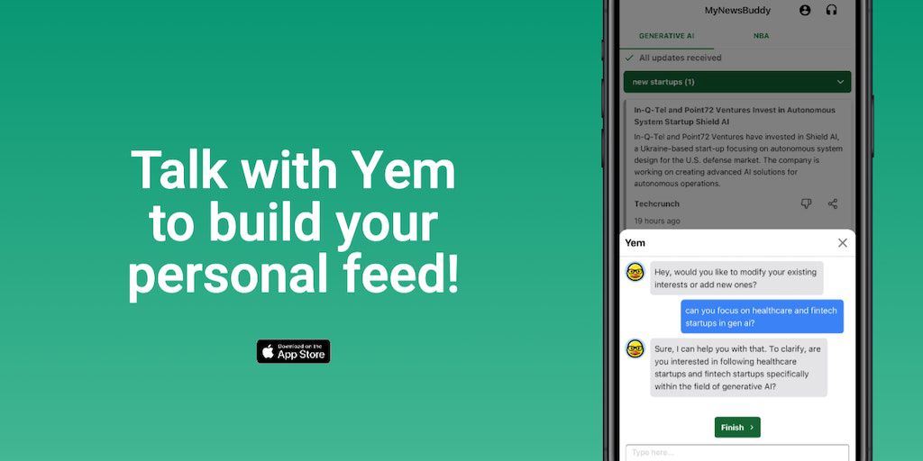 Yem is your intelligent news assistant who talks to you about your personal or professional interests. He scans the internet every day to handpick the most relevant insights and crafts custom updates