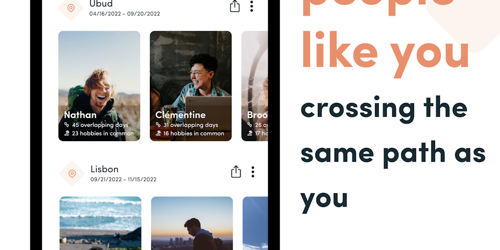 - Connect and meet other nomads along your travel plan - Interact on location-specific Hubs: introduce yourself, organize get-togethers (meet ups) or spark discussions. - Create a digital nomad profil