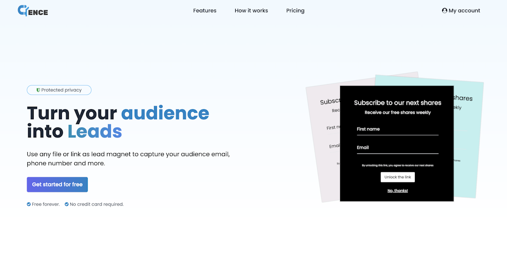 Dyence. helps content creators and entrepreneurs monetize their audiences more effectively. Create capture pages, export contacts seamlessly, and gain valuable insights into your audience.