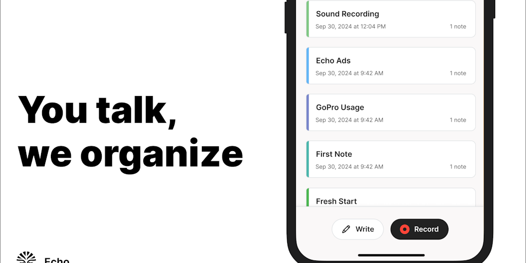 Echo is a mobile-first, voice & text, note-taking app that uses AI to organize your thoughts and bring them to life.