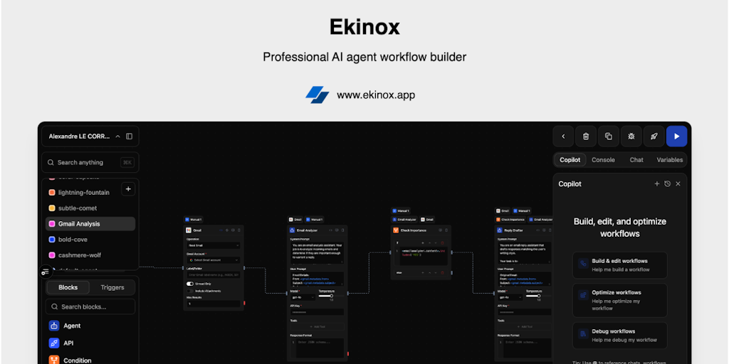 Ekinox: Visual AI workflow builder with 80+ integrations | Product Hunt