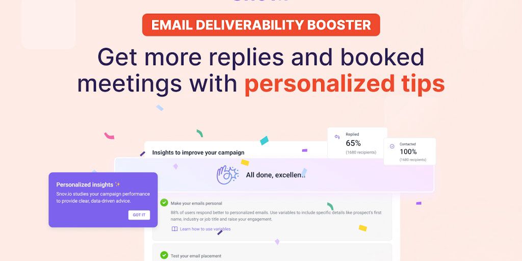 Cold outreach isn't easy in 2024. But with Snov.io Email Deliverability Booster, you can work smarter, not harder. No need to stress about getting blocked or landing in Spam. Get a full control over y