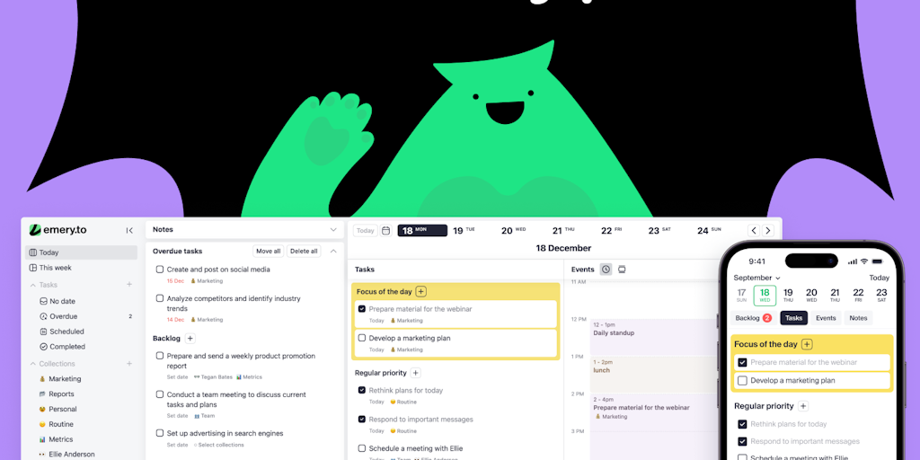 We built Emery to stop context-switching between apps. Manage tasks, notes, and calendar in one clean interface. Zero registration, free core features, and collections to organize your work. Web, iOS,