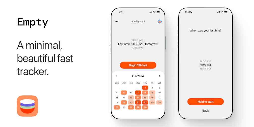 Whether you practice intermittent fasting, religious fasting, or you just want to cut down on your late night snacking, Empty is the companion app to help you fast (and eat) with intention.