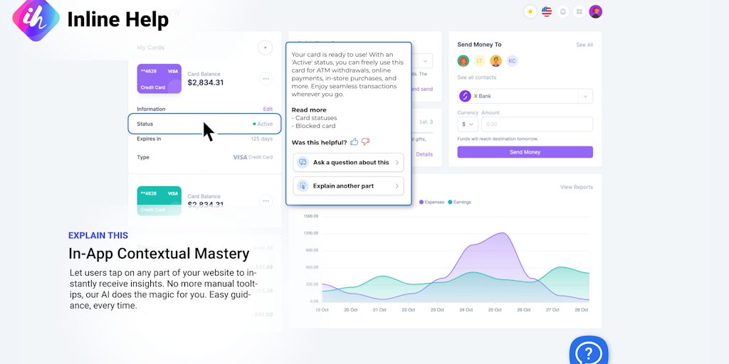 Turn your knowledge base into an in-app self-service tool. Users can access 'Explain This' for instant answers anywhere, tooltips, chatbot, submit tickets, browse knowledge effortlessly, and more — al