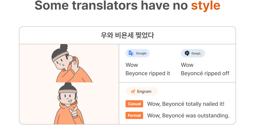 Engram reimagines AI translation with 11 styles that optimize translations for your context. Try “Academic” for research papers, or “Advertising” for social media content. Save hours of editing time w