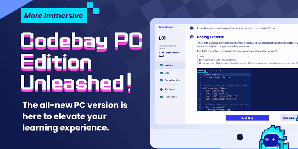 At Codebay, learning programming is easy, especially for beginners. Immerse yourself in the coding world effortlessly with our engaging interactive lessons and your personal AI tutor. Learn anytime, a