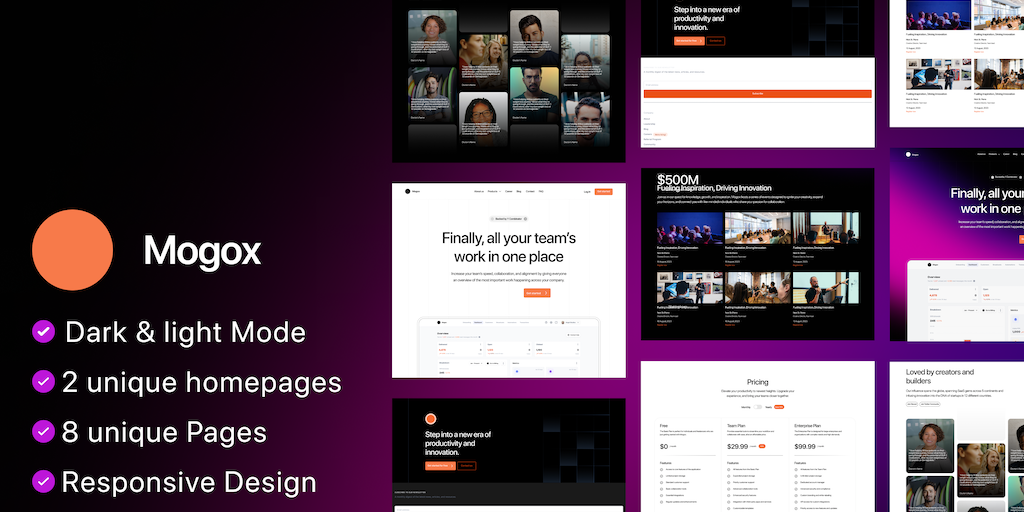 Mogox is a multipage Framer light & dark theme designed with a laser focus on modern SaaS needs. It's not just any template; it's the template for those who demand quality and speed. Mogox is built to