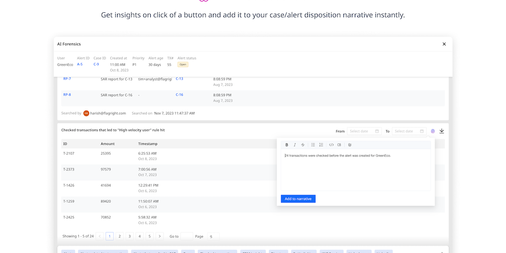 AI Forensics enables 90% faster AML compliance investigations through natural language queries, AI-powered auto-analysis, and decisive recommendations helping fintechs & banks to scale volume and grow