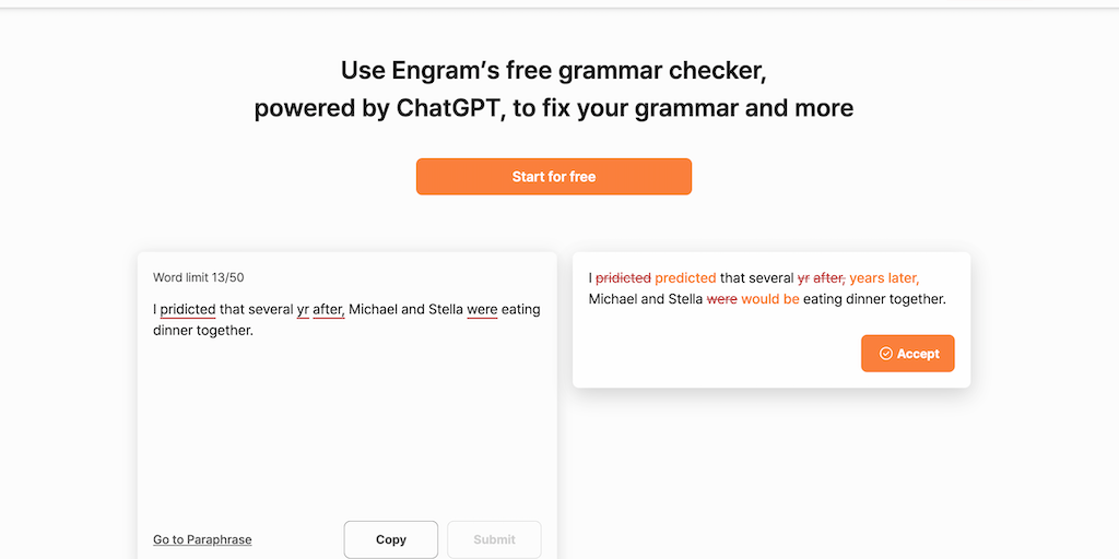 Engram is an AI-powered grammar checker and paraphraser optimized for non-native English speakers. Our proprietary AI, combined with ChatGPT, provides sophisticated, context-based edits for more natur