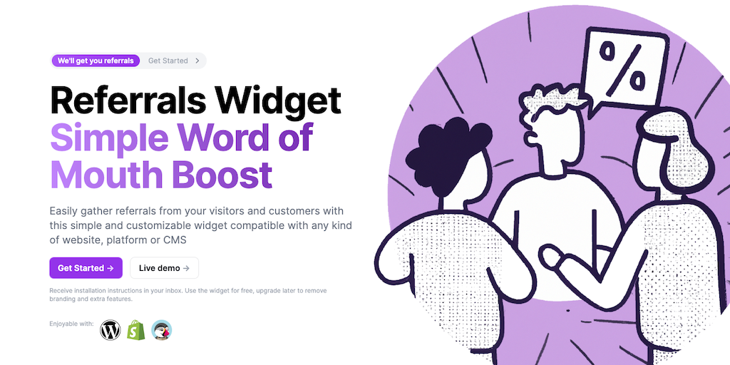 Easily gather referrals from your visitors and customers with this simple and customizable widget compatible with any kind of website, platform or CMS