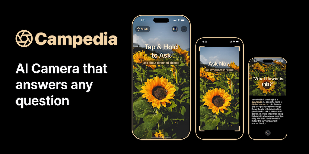 Campedia is an AI Camera that answers any question. It can be used for identifying plants, animals, coins, wines, landmarks, etc but also for more complex tasks like creating a recipe from ingredients