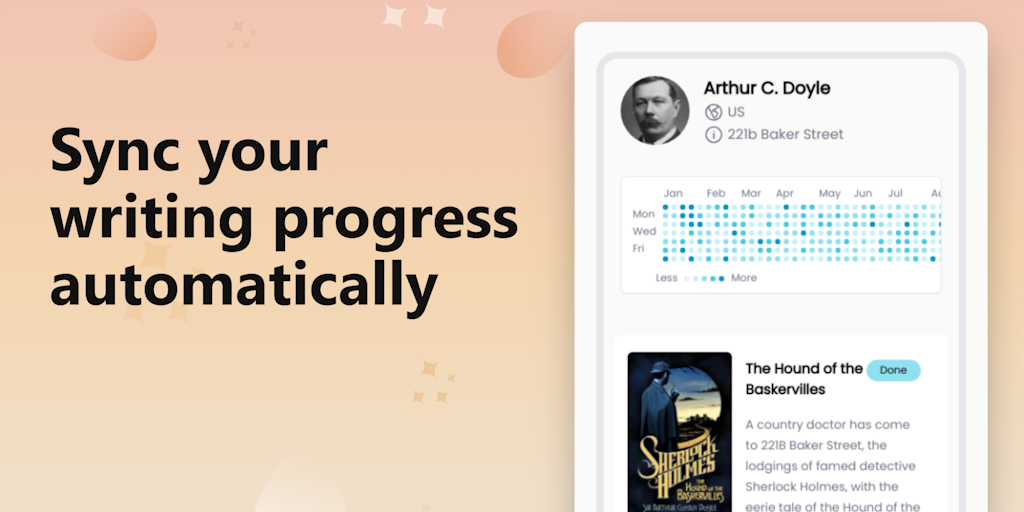 Quillcap automatically syncs your writing activity from your Google Docs file and shows your progress on a calendar (just like Github's commit calendar!)