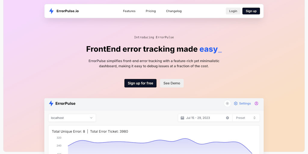 ErrorPulse - Complete Frontend Error Tracking at an Affordable Price | Product Hunt