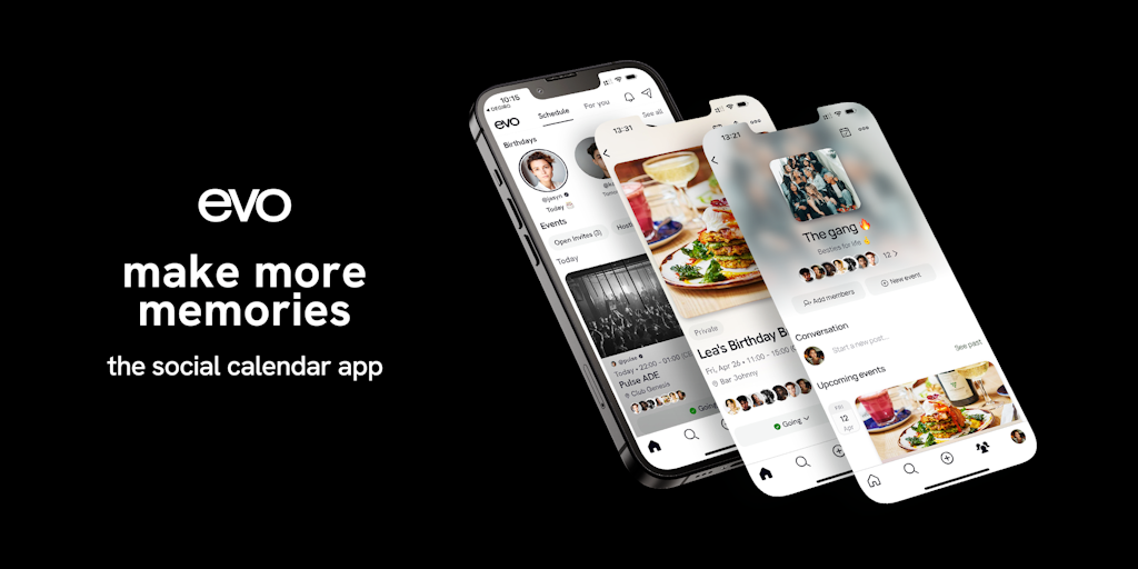 evo is a social platform for events and calendars. Host events, join shared calendars with friends, follow event calendars by your favorite artists, venues, or athletes. Never miss an event you love a