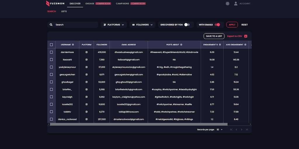FuzeMon - Discover, save, and engage with influencers for campaigns | Product Hunt