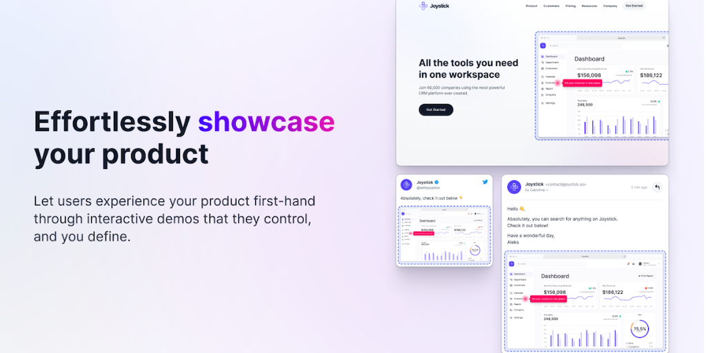 Create interactive demos in minutes that can be embedded on websites, blog posts, email, or tweets. Get your prospective users to try before they buy, and turn all users into power users. Try it out f