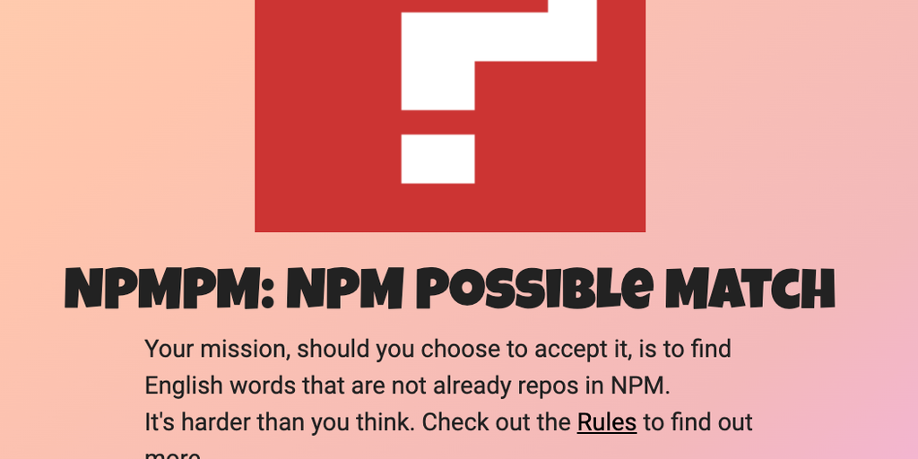NPMPM - A game to find words that aren't NPM repos, yet | Product Hunt