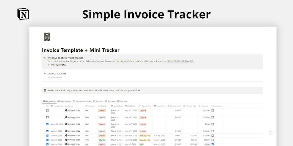 Simple Invoice Template and Mini Tracker - Simplify your invoicing with this FREE Notion template | Product Hunt