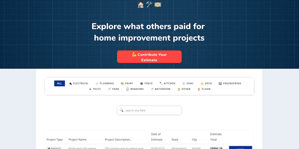 ProjectEstimates.fyi - Explore what others paid for home improvement projects | Product Hunt