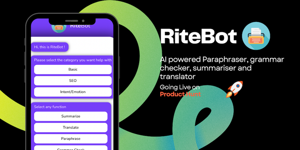 RiteBot - Paraphraser, grammar checker, summariser powered by ChatGPT | Product Hunt