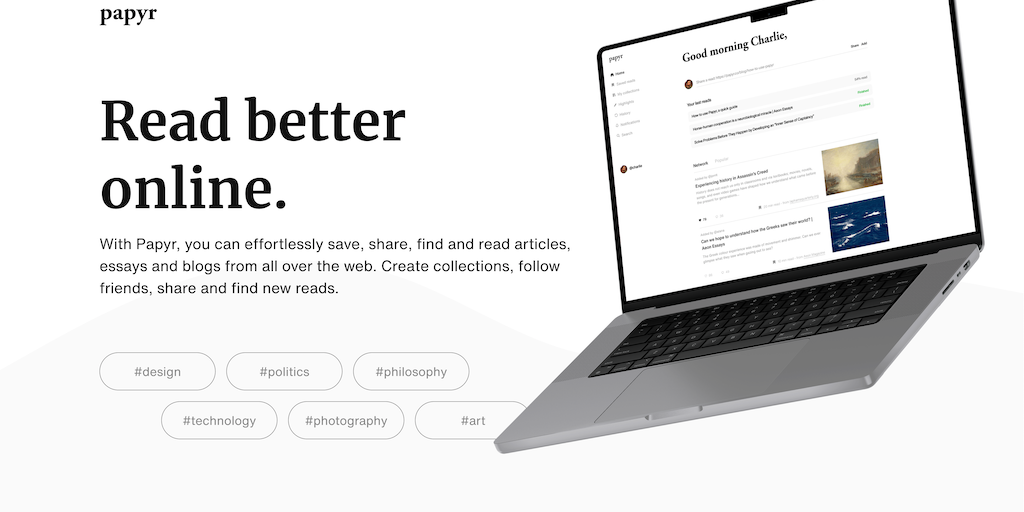 Papyr is a social reading app designed to make sure you find something great to read. Follow friends and see what they are reading, or follow your favourite author, news publication or blogger to get