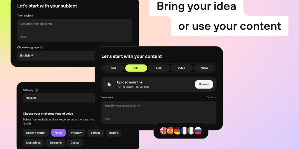 Craft interactive content with ease using Meiro. Create tests, quizzes, and text games in minutes. Educate, entertain, and engage your audience effortlessly. All-in-one platform for impactful content