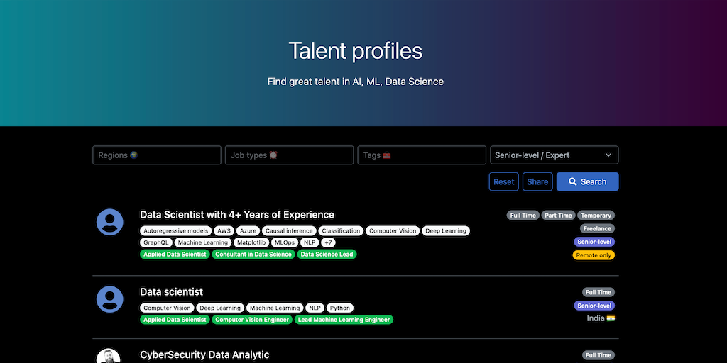 Talent profiles - Find great talent in AI, ML, Data Science | Product Hunt
