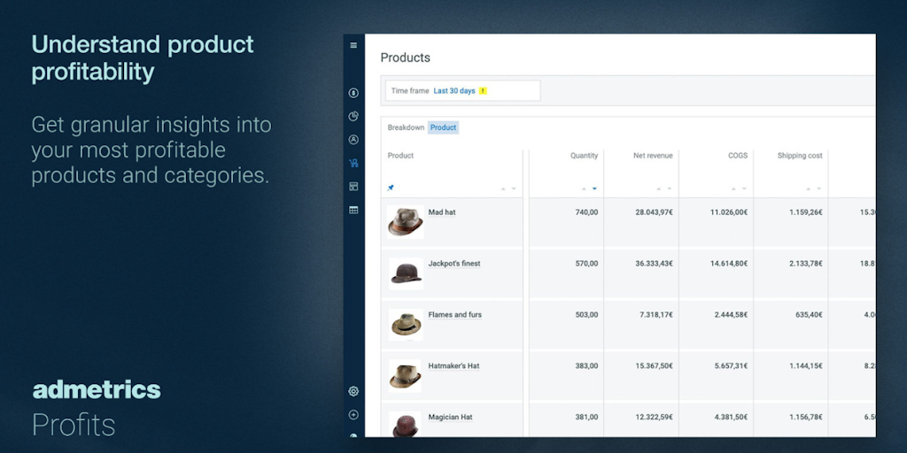 Admetrics Profits for Shopify - Free - Profit analytics to grow your e-commerce | Product Hunt