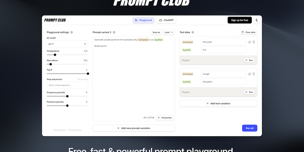 Prompt Club - Free, fast & powerful Prompt Playground for GPT | Product Hunt